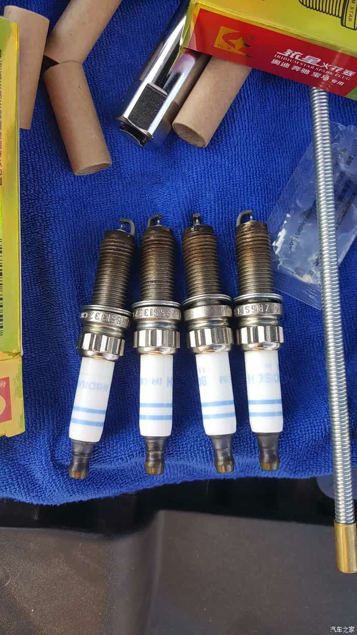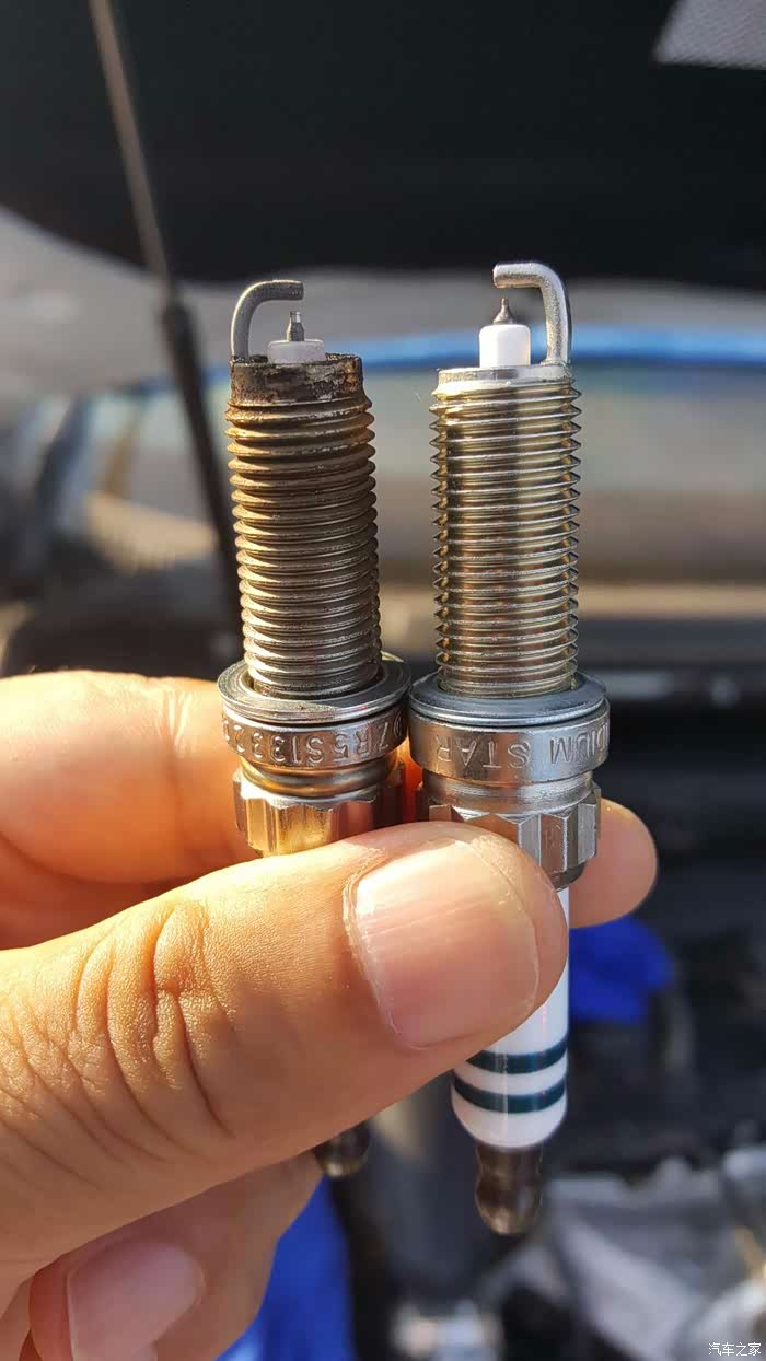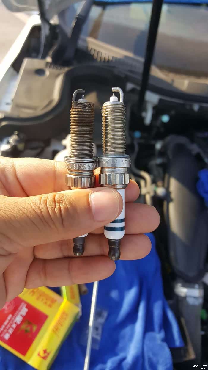 通过更换火花塞后,怠速和行车的综合测试,感觉噪音没改善,加速性没有提升,仔细对比火花塞质量,原车是世博双铱金的,经过14000多公里,火花塞接点一样保持原来的金属色;新更换的火花塞是铱铂金火花塞,电极的金属稳定性不如双铱金的好。综上所述,决定把原车旧火花塞清洗后,更换换回来。