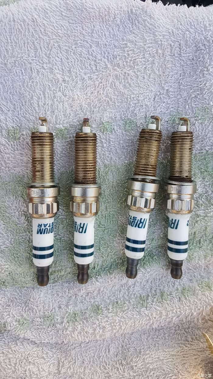 真个拆除完后,4只原车火花塞近照。