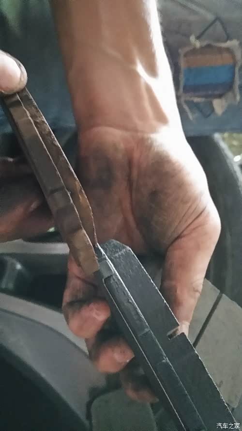 左前轮刹车片已经只剩下一点点了!