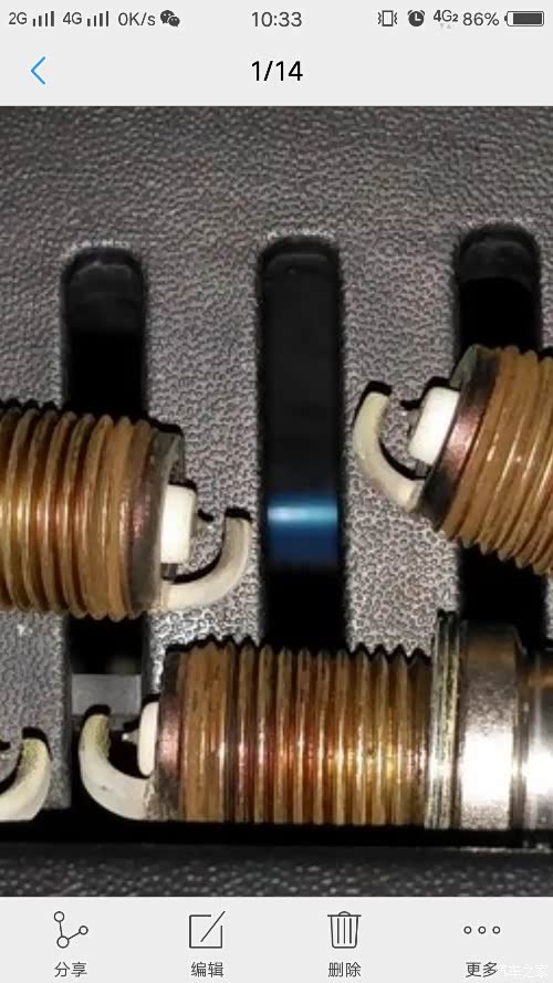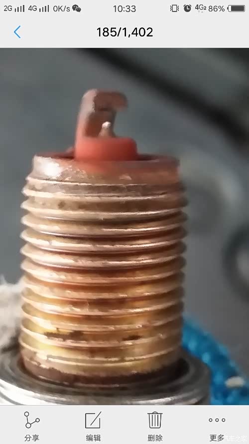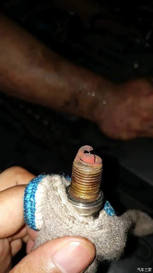 这是5W公里时的状态!仔细看看,电极一端有了一个凹槽了!而且发红,说明油品含水太高,杂质较多,燃烧不充分,什么硫化物什么的咱们也不是专业人士,但我庆幸还好及时发现了车辆异样,并进行更换!