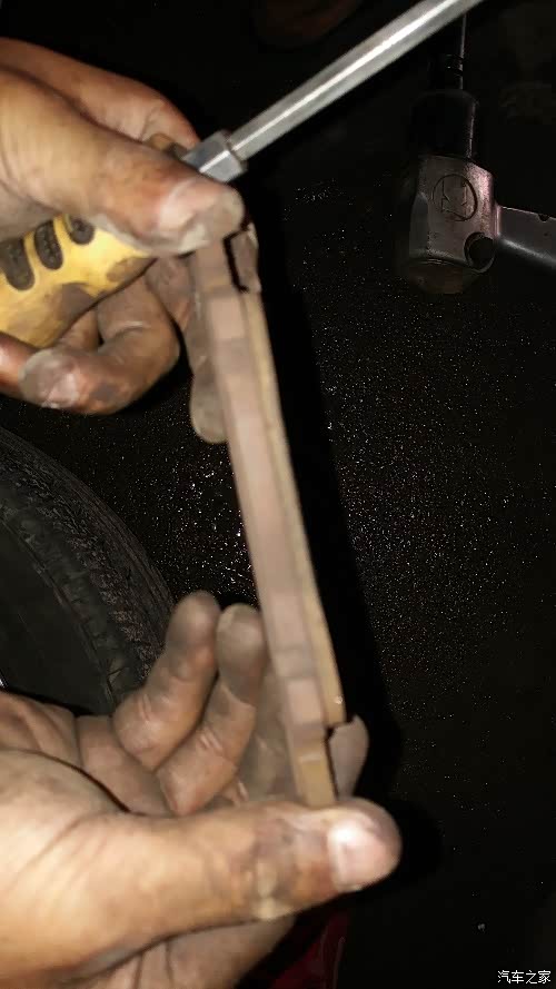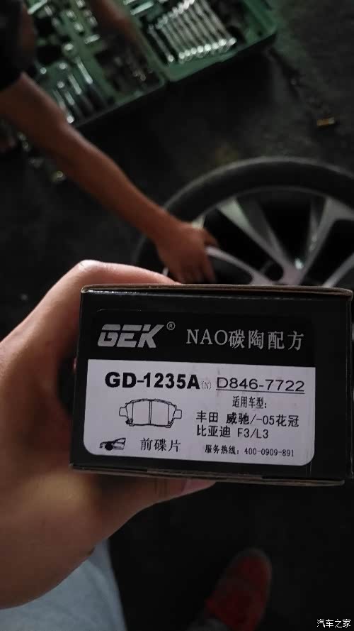 接下来发现原厂前刹车片很薄了,后面没问题,换!一步到位!换好的!碳陶配方的,百度一下是168