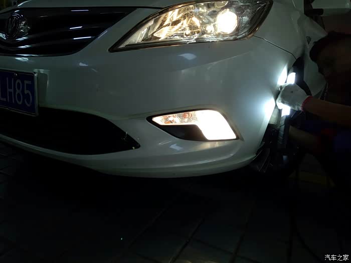 在车上是感觉有一边的灯光不亮,结果下车后才发现有个雾灯没亮咯