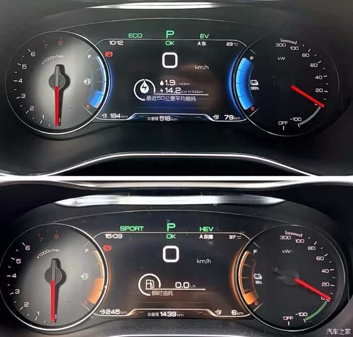 在HEV+ECO状态下,起步、中低速,都会采用纯电机驱动,只有进入到发动机最高效的工况下,发动机才会介入,动力系统遵循“先电后油,效率优先”的工作逻辑。