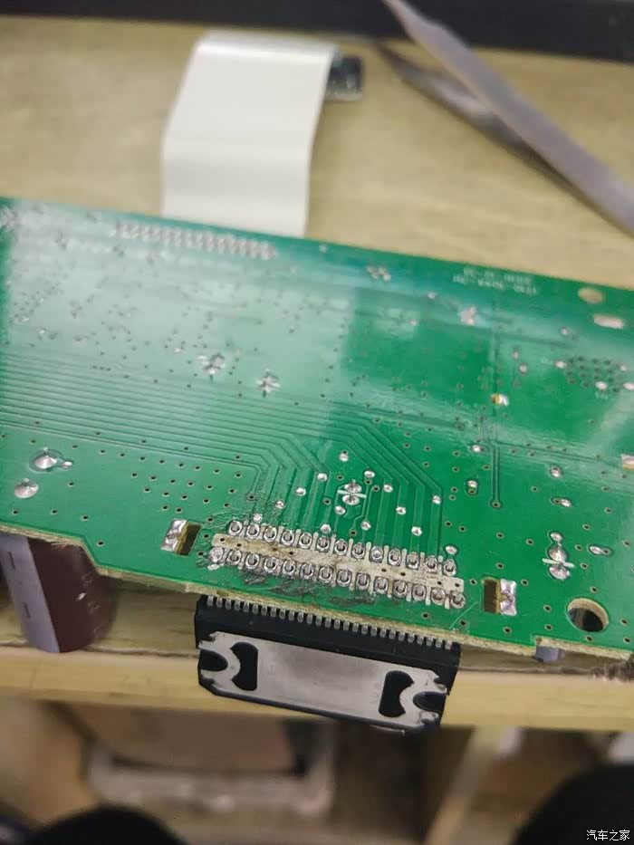 没有热风枪,只有一个烙铁和吸锡器,干脆剪了,然后用镊子一个个取掉,吸锡器吸干净,没办法,技术不行只能这样取了