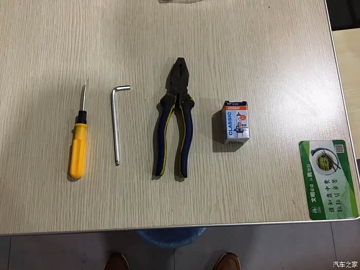 首先是拆卸需要用到的工具 左到右分别是 十字起 5号六角扳手,老虎钳 然后就是要换的欧司朗H7的近光灯泡。