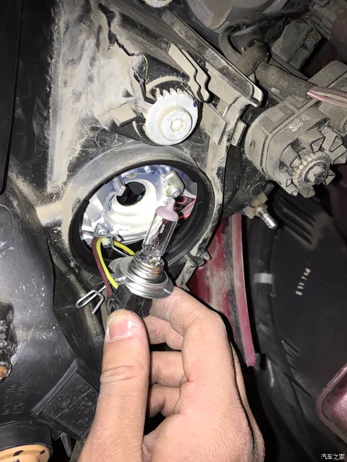 前天晚上开车突然感觉灯光怎么那么暗?下车一观察左近光灯泡不亮了话说一个月前才换的右前近光灯泡,无奈当晚上某虎购买灯泡买的是欧司朗H7的灯泡,用着也感觉比原厂要亮一些,好了话不多说开始我的作业。