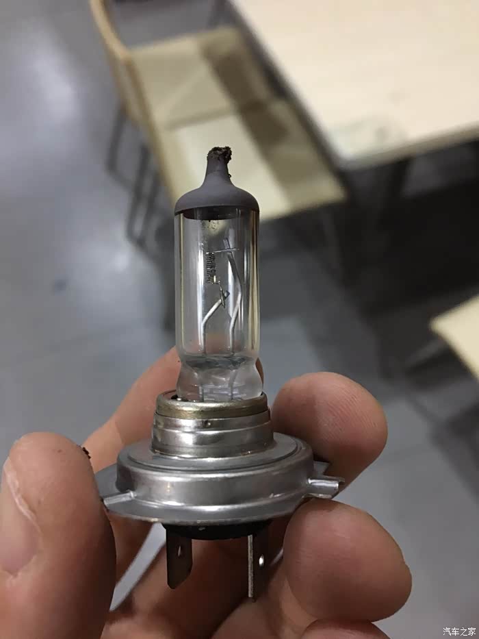 换下来的灯泡很明显里面黑了。