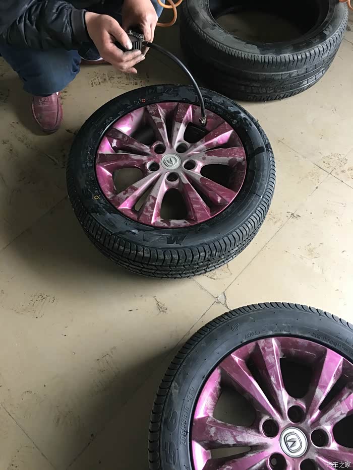 客户正在亲手帮我装轮胎,这个不是师傅做的吗?老板都上场了。