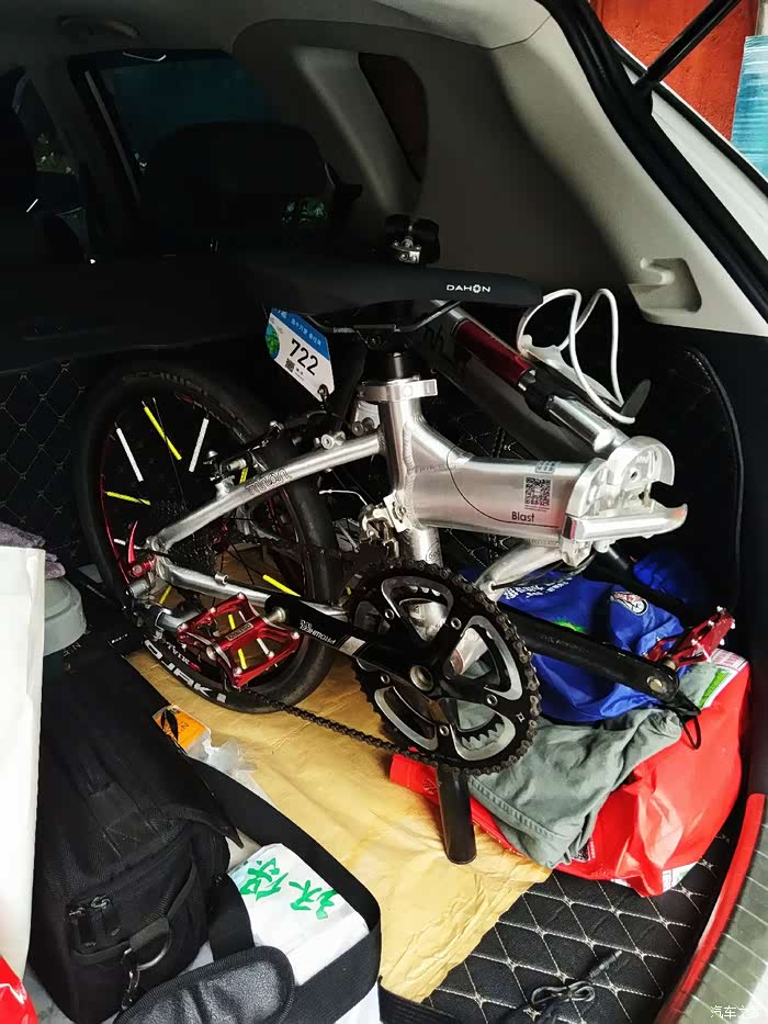 装上20寸折叠车整装待发,后备箱目测可以放3辆