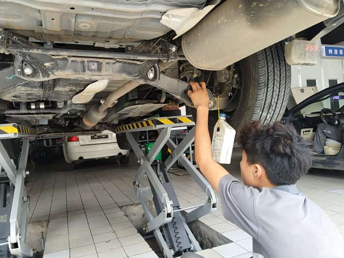 修理店老板亲自来倒刹车油