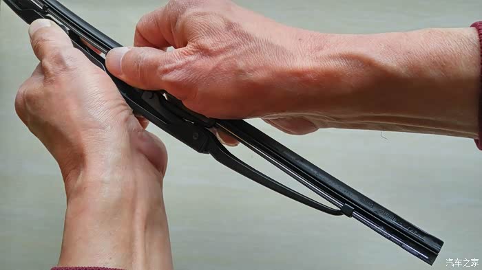 扳起准备安装新胶条雨刮骨架的摇臂