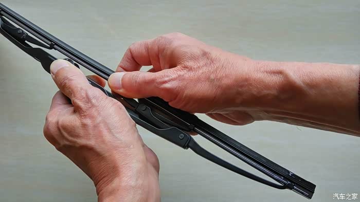 卡好U型钩,将骨架胶条扳回平行雨刮摇臂