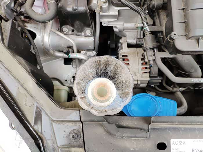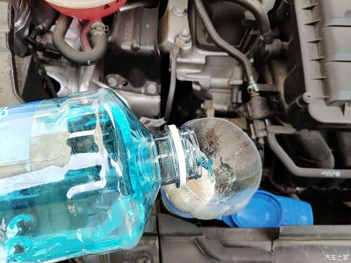 不然的话堵住玻璃水管路就要全部拆开维修了,没有这个滤网的车友可以自己根据车型购买一个装上,还是比较实用的。由于玻璃水壶口的位置比较低,满满的一瓶玻璃水在加装的时候水流过大经常会洒落到外边,所以我用饮料瓶自制了一个小漏斗,把它放在水壶口上,然后在直接加玻璃水就不会洒落到外边或者飞溅的到处都是了,嫌麻烦的车友也可以直接购买一个小漏斗使用,也是很方便的。冬天的时候加玻璃水要注意不要加太满,防止玻璃水结冰之后没有空间膨胀从而胀破了玻璃水壶。其他三个季节就不要留太多空间了,加到能看到就可以了,一般玻璃水壶的容积在2-3L左右,市面上销售的玻璃水一般在1.5-2L左右,一般一次加一瓶刚好。
