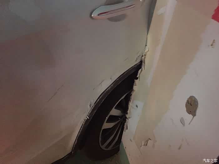 彩蛋来了——早上出门和老婆在车上聊得很开心,结果不留神挂在地库拐角的柱子上了。两个心大的人,下车拍个照,继续开开心心的出发。