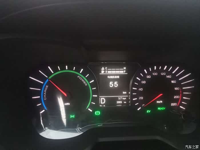 之前有车友说没办法充满,但是我感觉我的车充电完全没问题。这是第二天开了一两公里才发现,忘了拍照。于是趁着红绿灯停下来补拍了一张,显示还有55km的电续航。