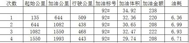 上次加完油以后的里程数1550km。