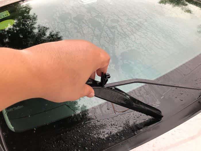 一手抓住雨刮器,一手将雨刮器铁板钩子向前斜推....