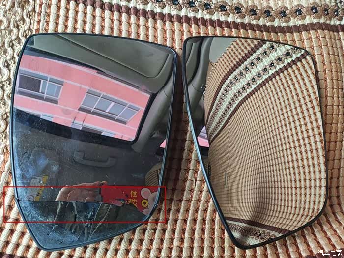 主驾位后视镜片有条裂痕,确实很阻碍视线,不换不行啊。