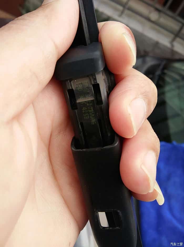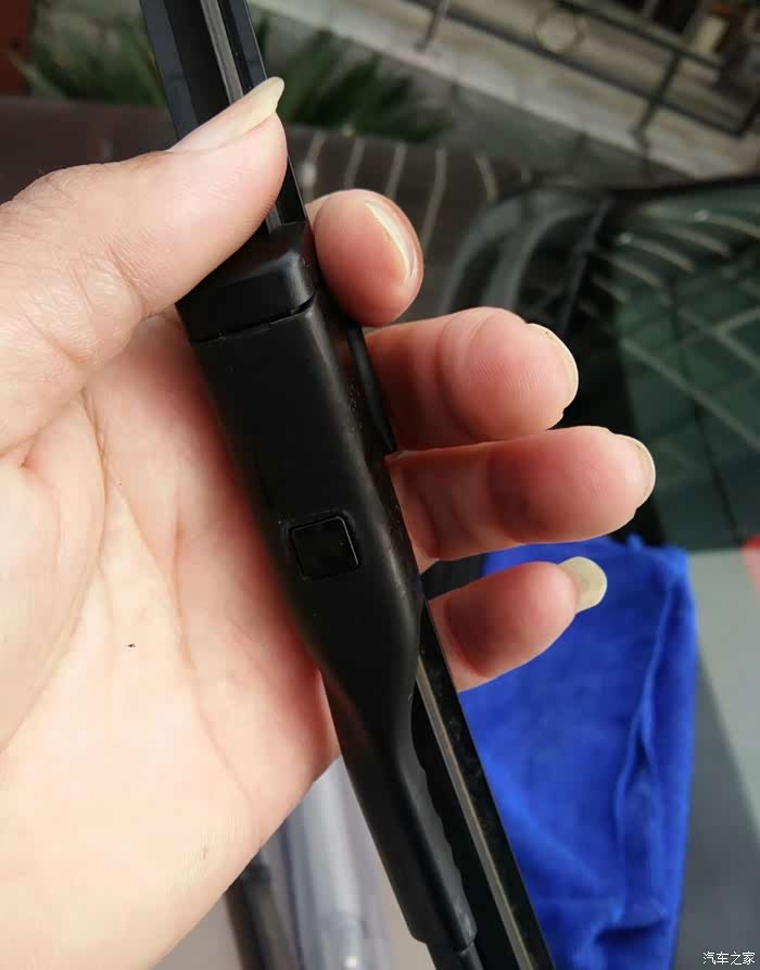 安装很简单,只需要把雨刮器插入雨刮杆顶端的卡槽,看到雨刮器上面正方形的小按钮从雨刮杆中间卡孔中弹出来,雨刮器就装好了。 用同样的方法装好另一边,一副雨刮器就更换完成了,是不是很简单呢。