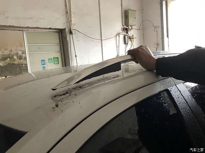 擦干以后,把新的行李架摆上来对准位置,前后都是弧形接触面,只要无缝隙了就好了