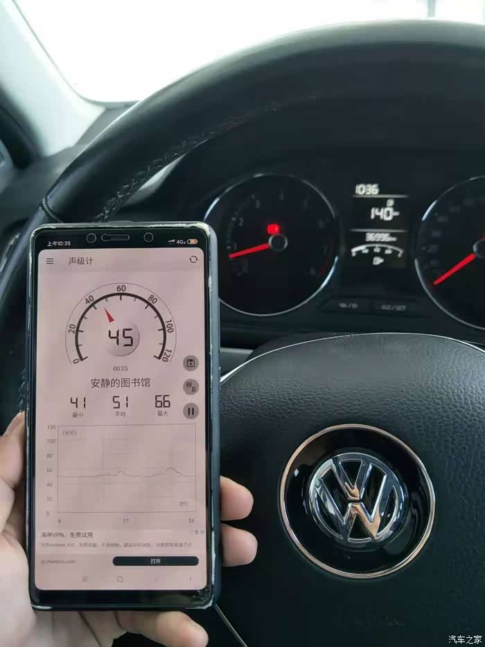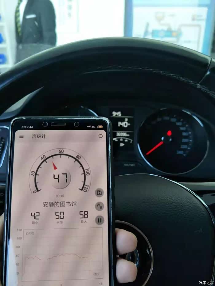 把车开到4s店,9:44下车前测试的怠速噪音。