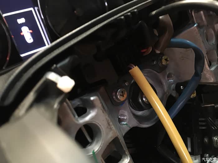 固定好螺丝,就开始插接上面的插头。这个黄色的线束就是主气囊的线束,基本上所有牵扯着气囊系统的配件都用这种颜色的线束。