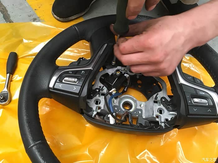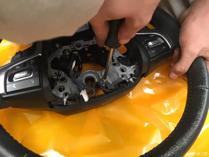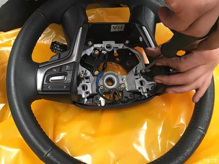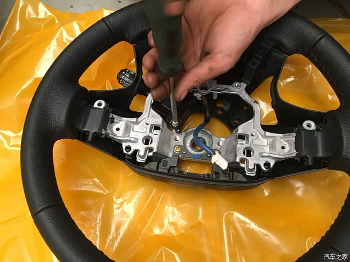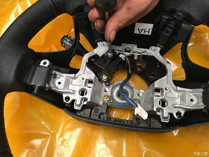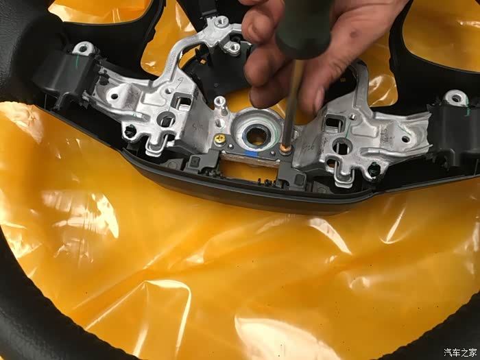 拆完开始把零件安装到新的方向盘上。先安装加固件。