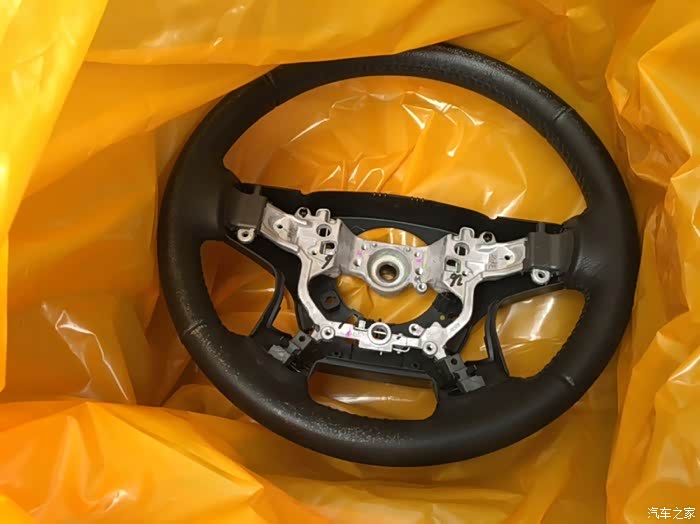 新的方向盘已经取出来了。方向盘表面颜色均匀,新的就是新的看不出一点瑕疵。