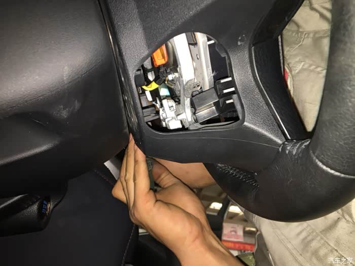 撬开方向盘左下方的维修孔……