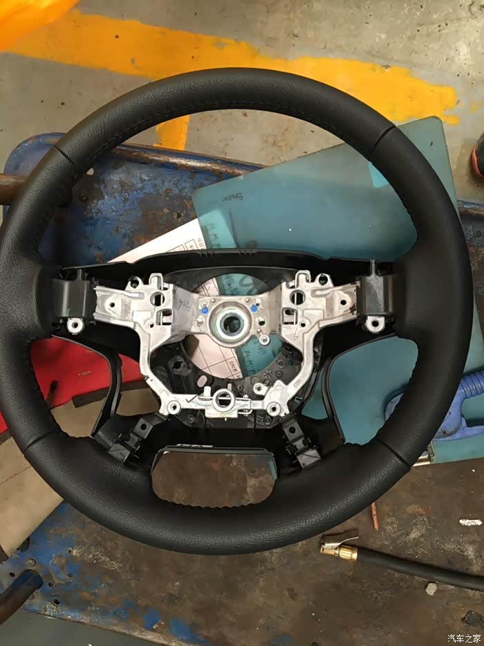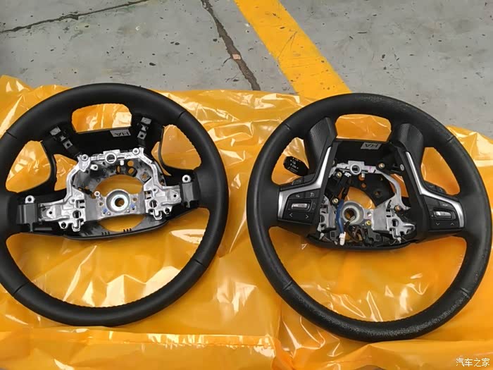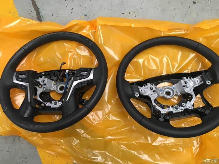 再来个正面照。两个方向盘放在一块的目的一是为了对比一下两个方向盘是否完全一样,另外一点就是要把旧的方向盘上所有的开关都倒换到新的方向盘上。