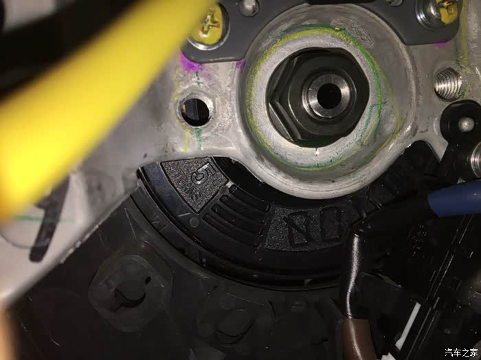 所有开关倒完把方向盘安装到方向管柱上面,对好刚才做的记号上面。