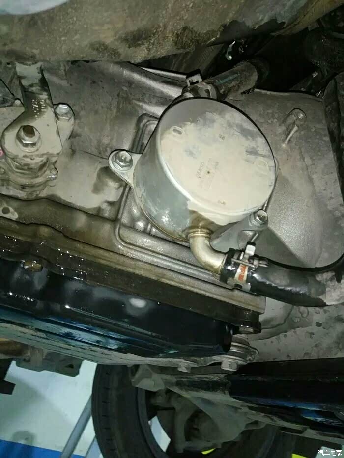 启动车辆发动机怠速运转,变速箱档位P档开始交换了。可以看出刚开始旧油部分非常的脏。