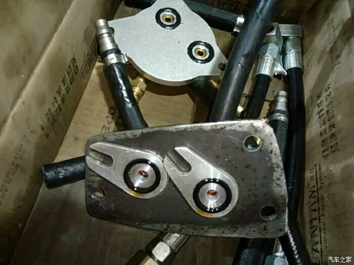 将这个工具紧固在原来冷却器的位置即可,一个进油管一个出油管。加工的严丝合缝,启动车辆后没有一丝滴漏现象。