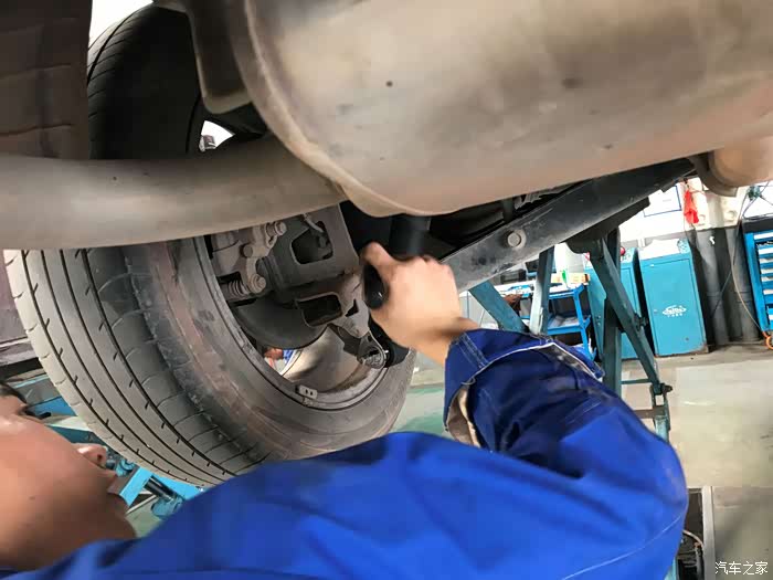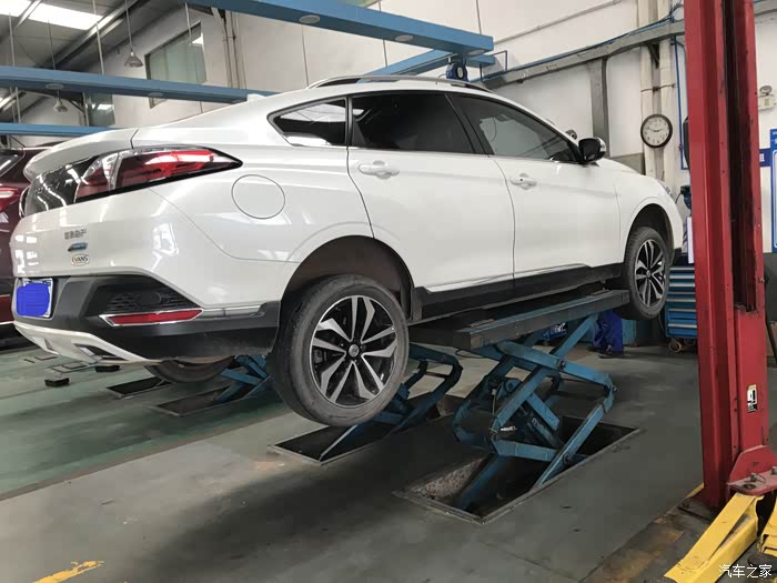 高底盘在通过小山坡时一览无遗,有这样的高地盘我还有什么好担心的,有句老话说得好“常在河边走,哪有不湿鞋”,这不,代价马上就来了。开的时候上山坡,压石路,趟小河沟,驾驶操控感觉超爽,玩得不亦乐乎。过后一段时间,开着小九,总感觉哪里不对劲,底盘总传出响声,坐在驾驶座上总感觉一高一低,并且总是跑偏,我就意识到出问题了,只是还不知道出在哪里,会有多严重。赶紧找了时间约了售后顾问去专营店里好好检查检查,不然开着我都不安心。
