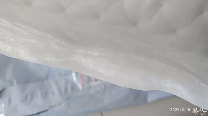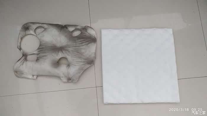 这个是对比,真的是天壤之别啊。哈哈哈,说笑呢,看下原车是那种鼓鼓的,看到像菊花似的花纹中心了么,就对应上图那几个胶点(当然小五车主都知道,皮一下)。没有很密的粘住,新买的这个就像席梦思床垫那样的带网格的,你懂的。