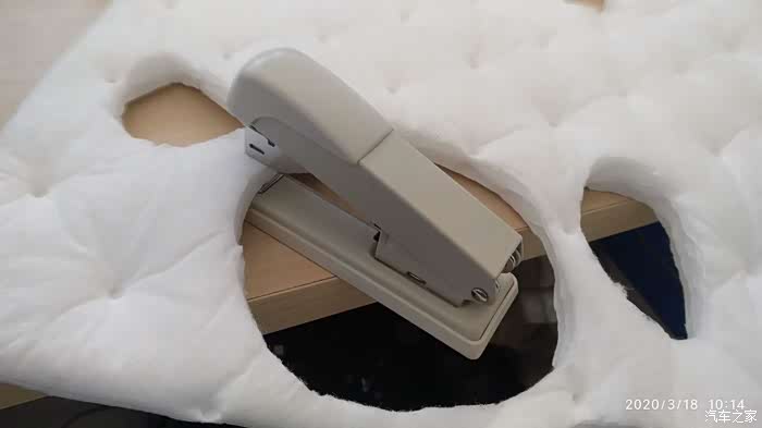 剪出来对比一下,还是挺合身的,剪出来的地方,全是伤口,皮开肉绽的。怎么办,办公室有订书机,给他订上,防止外露。突然间把自己想成外科大夫了。