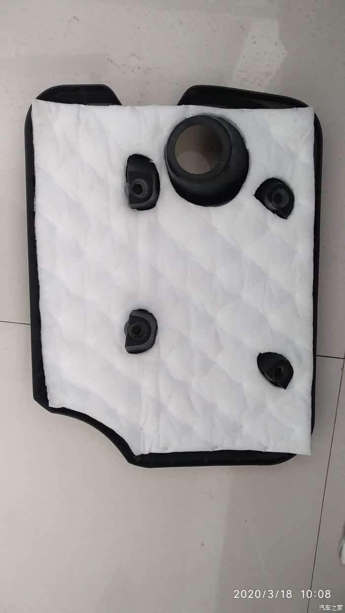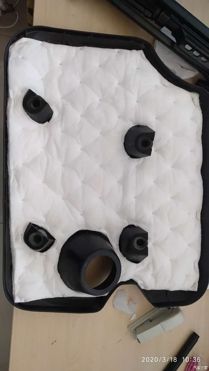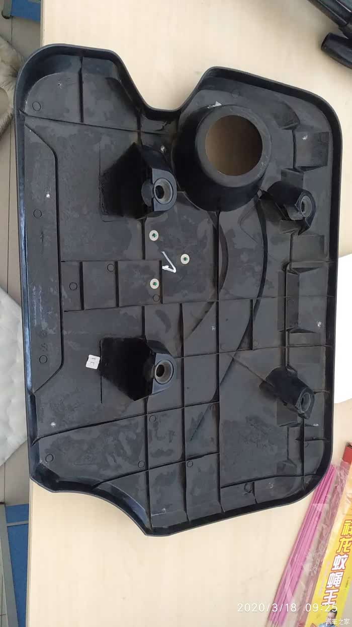 原来的已经拆下,这是罩子的原貌。看到那几个白色的点了吗,就是原车用来固定这个东西的胶点。请继续往下看。