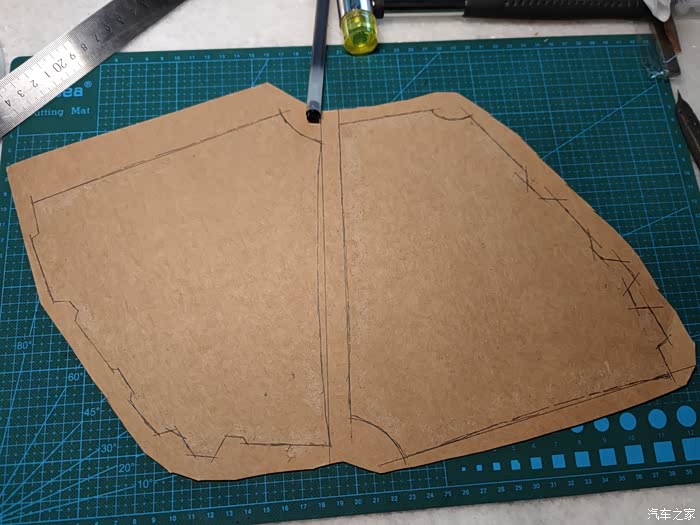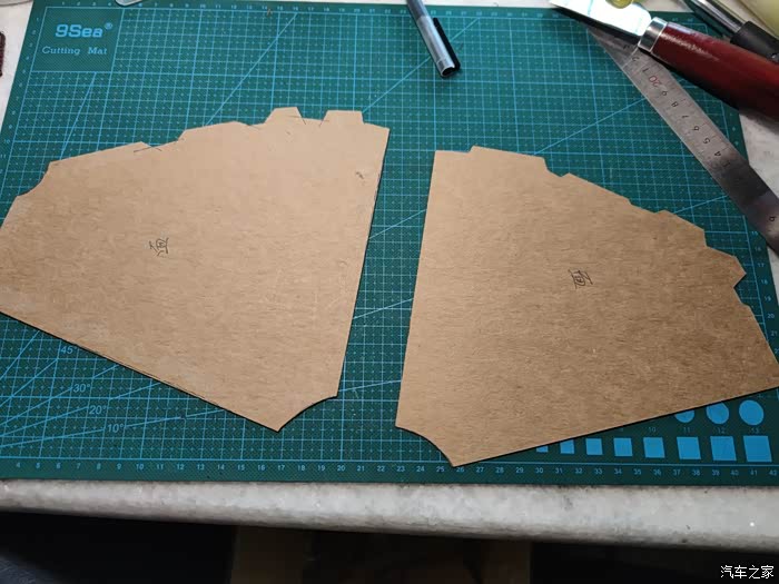 把两片假皮倒模在卡纸上。
