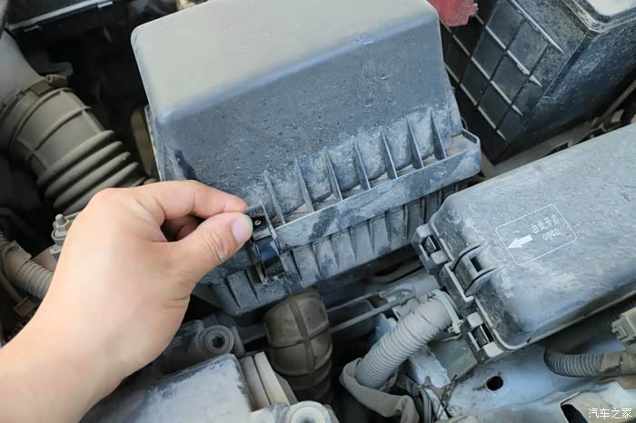 这里有个扣子,打开这里就是发动机空气滤芯的所在
