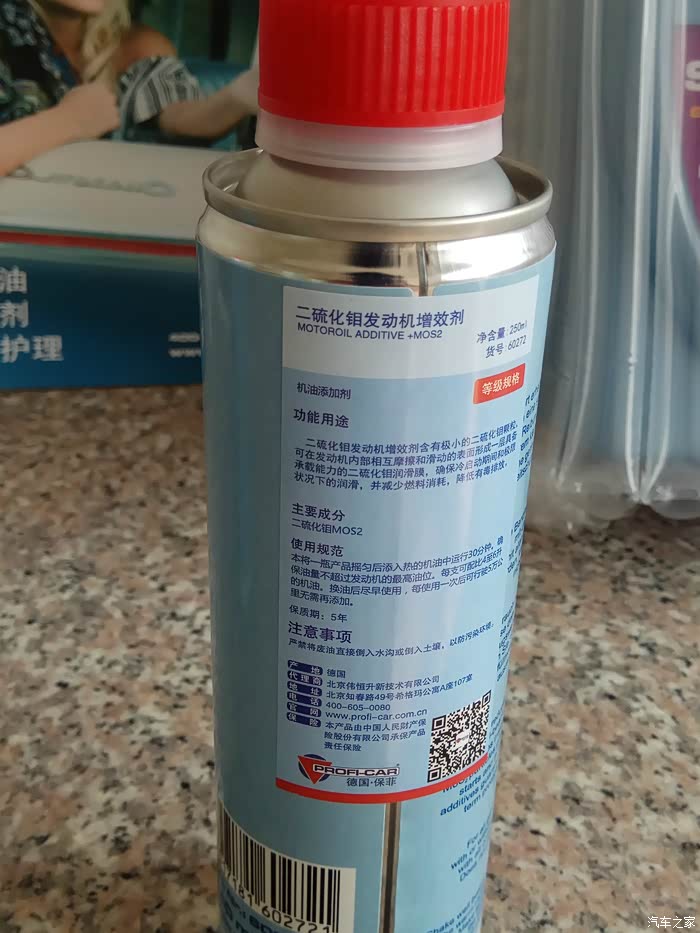 这是发动机的增效剂,记得要加入新的机油,热车后加入的,又是洋码子,看不习惯。