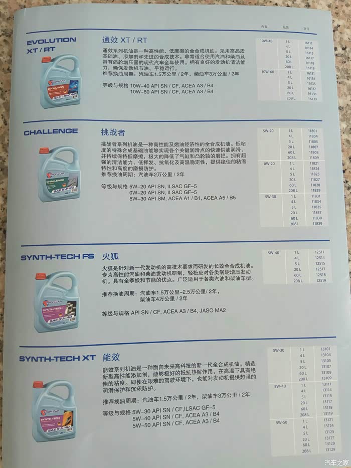 种类很多,总有一款适合你的爱车,看产品介绍。我试用的是排在最后的。应该是按发动机给我推荐的产品。