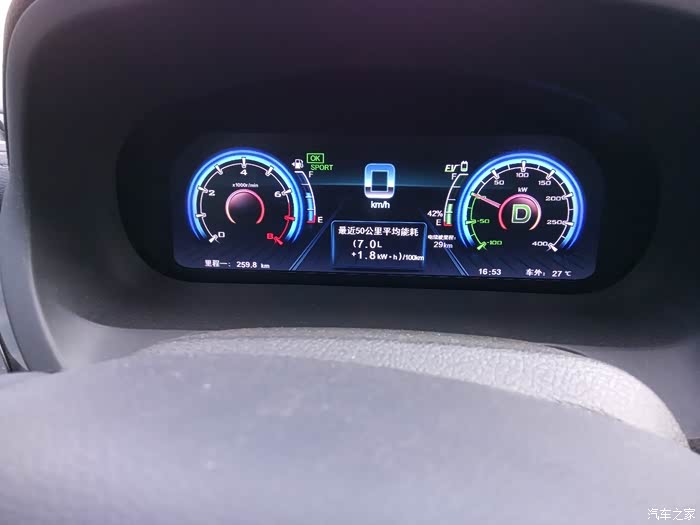 这张图片混了进来,无所谓了,这或许是我纯电模式的最好成绩了,时间是周日,也就是回来第二天,油还是满的,注意里程数:442.4,前一天是378.7,也就是说我纯电跑63.7公里,还有33%的电,按照这个比例算的话,纯电极限可以跑90以上。周日那天带孩子去米立方了,路口还算不错,只不过中间有一段村级公路,会车都需要几乎停下那种。