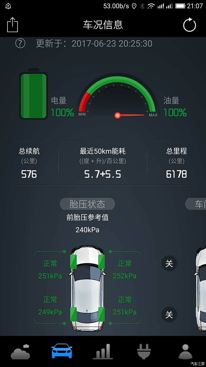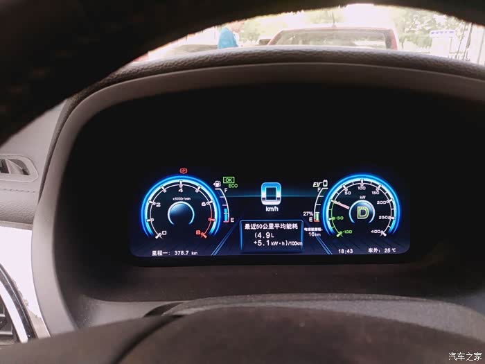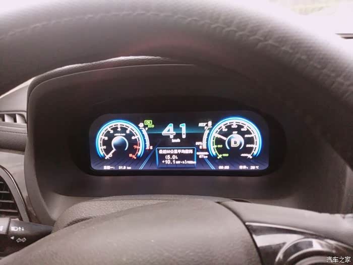 最后到达家附近加油站时的里程以及所剩油、电,最后在市内走了很长一段外环,平均时速60-70左右,感觉这应该是最省油的时速了。