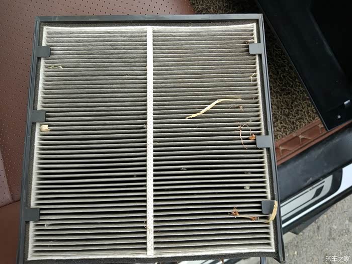 可以很明显看到使用大半年的空调滤芯上面有很多灰尘和异物