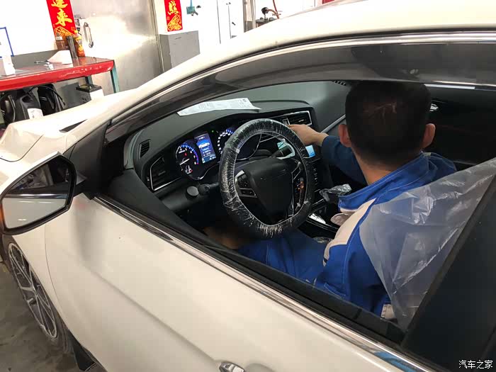 师傅套上胶袋,担心弄脏车主的车子,专门套上袋子,做得很周到。