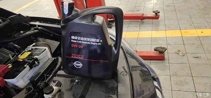 这次保养完真的觉得车子开起来平顺了许多,这真的不是心里作用,所以各位车友还是按时去保养。你对它好,它自然也不会把你丢在半路上。这次保养就是小保养,换机油,机油滤,和超强磁力放油螺丝。其他的都不要,机油用的日产超级全合成0w-20机油,价格也不贵,396一桶,机油用好一点还是对车子有好处的。这次保养总共花费500多一点,4s还免费给加了雨刮水和冷却液。感觉服务不错。好了,下面开始上图。