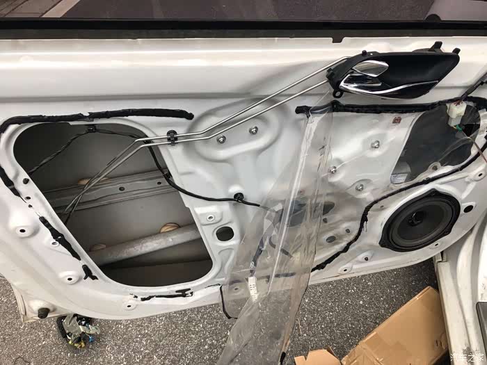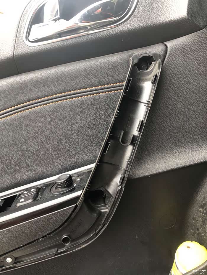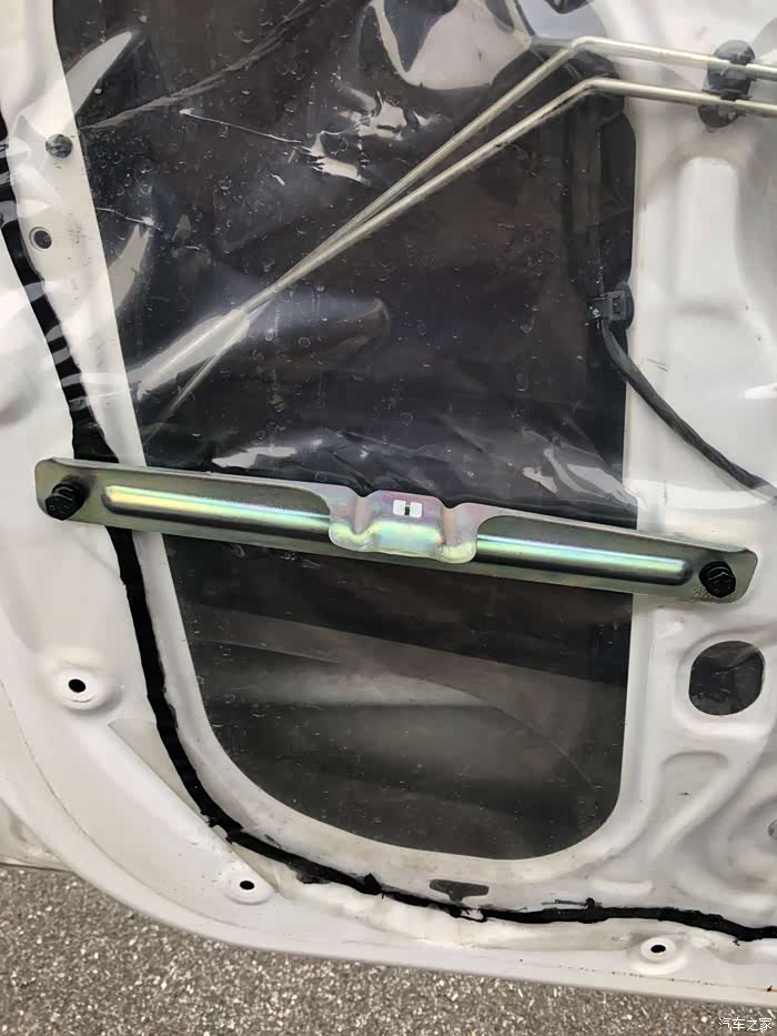 门框这根横梁是固定内饰板把手的,俩螺丝取下
