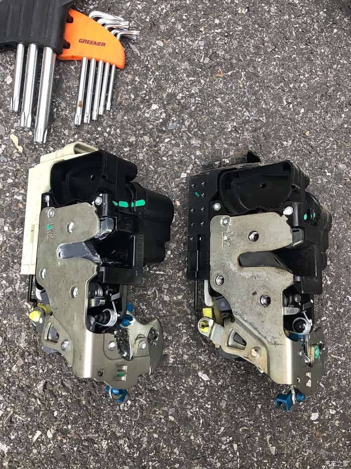 3年半的小仨,前些日子遥控开锁时候,门锁能打开但是听到锁块咔咔咔咔咔响,能正常开门关门也就没在意。可是这几天情况越来越糟糕,关门时候我不上锁小仨自己给我自动锁上了,这还了得,要造反的节奏啊~~~终于,在一个炎热的下午,我路边下车想去小店卖瓶水,下车随手一关门,咔嚓,小仨自己把门锁上了~~~看来车和人一样,有毛病不能拖,拖拖小毛病就拖成大问题了~~~