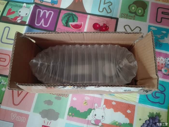 打开箱子,映入眼帘的就是这个充满气体的缓冲包装,很严实。