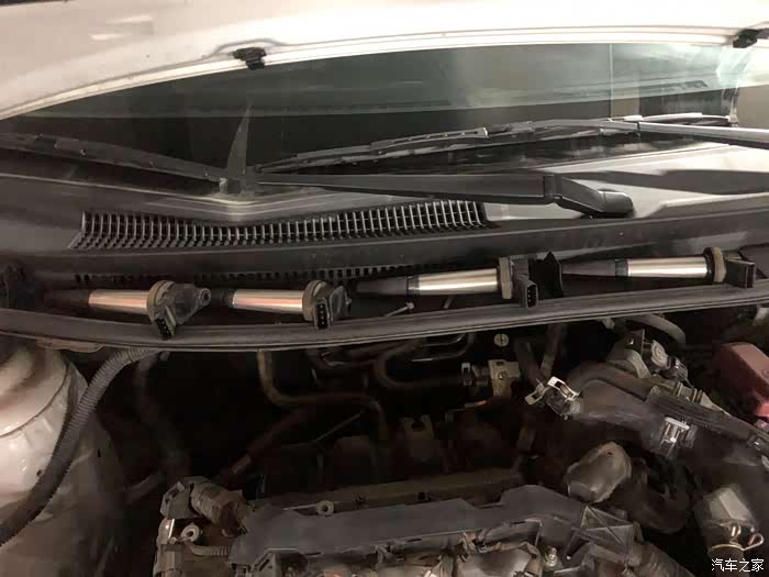 第一步掀掉发动机装饰盖,拔掉点火线圈的插头,拧松固定螺丝